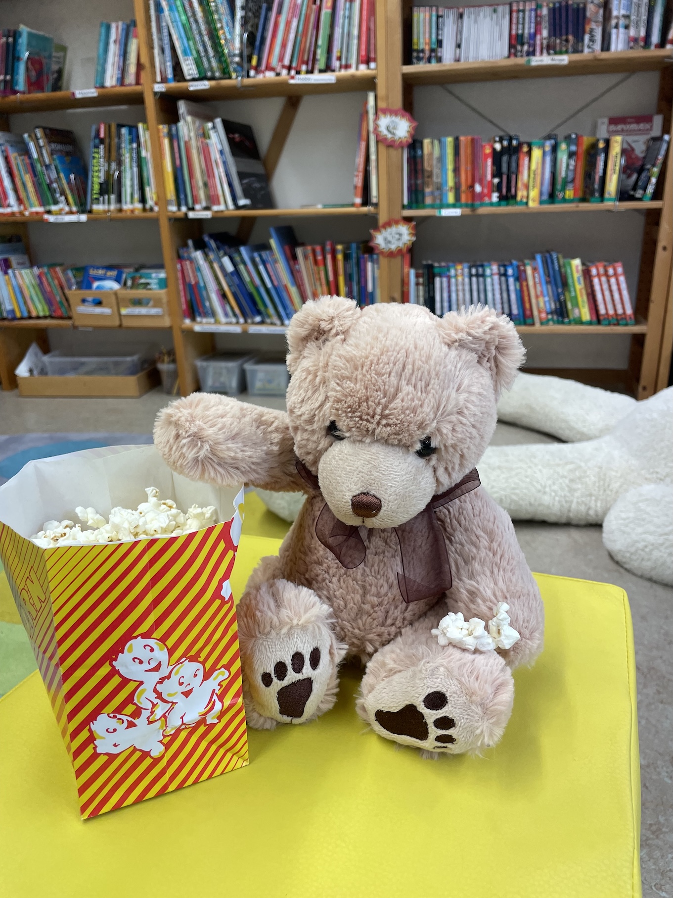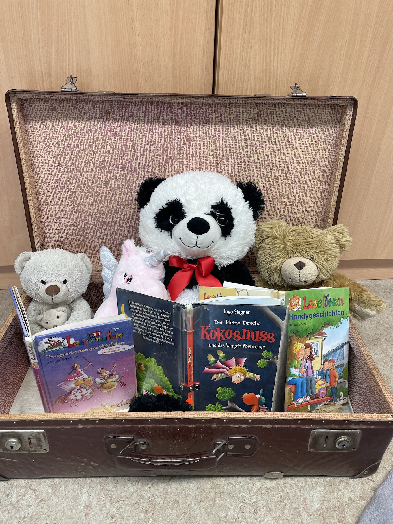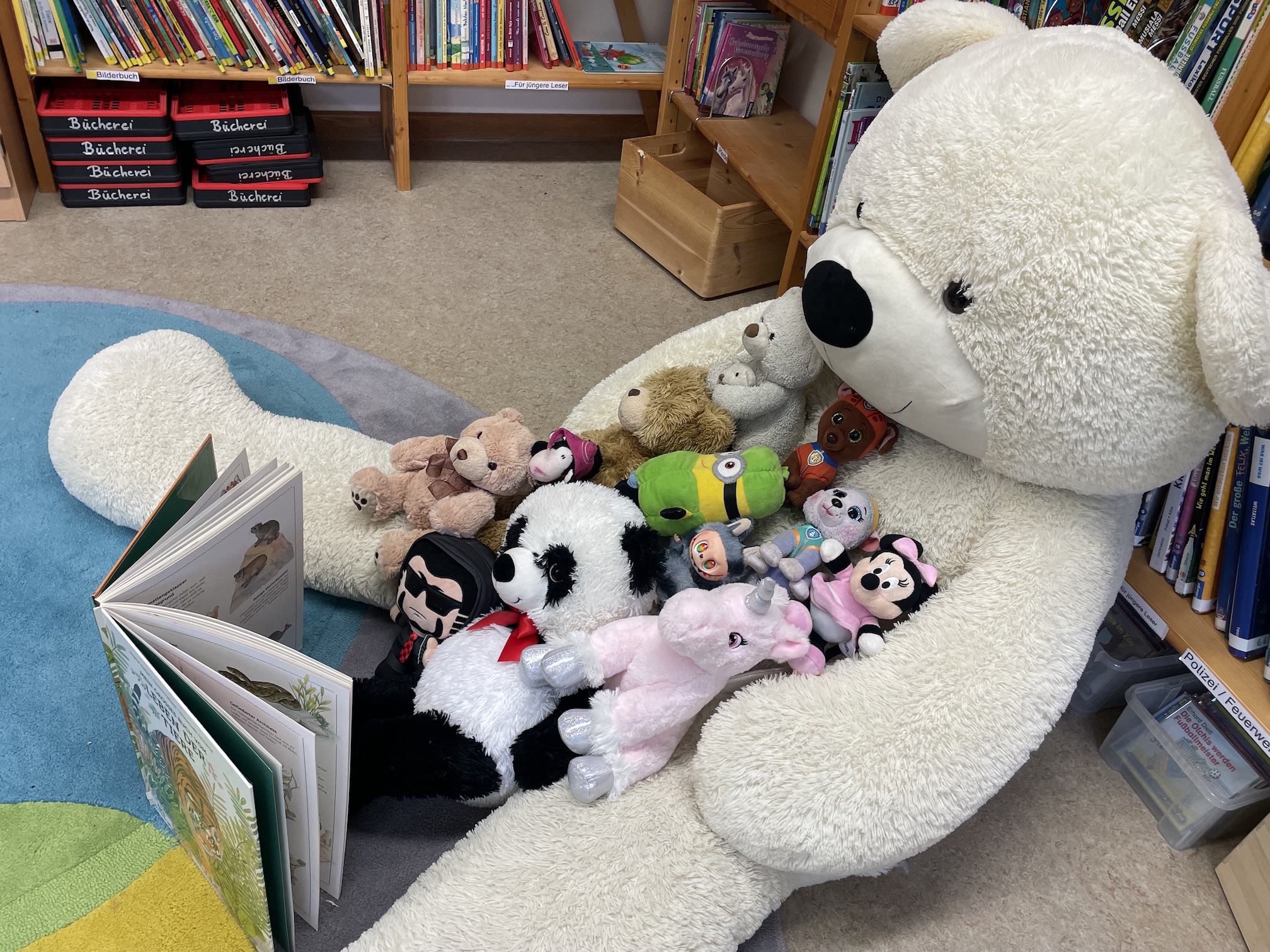 Am nächsten Morgen war es dann soweit: Nicht nur die Erstklässler, sondern auch ihre Kuscheltiere durften die Bücherei kennenlernen. Die Kuscheltiere blieben den ganzen Tag und durften sogar dort übernachten.